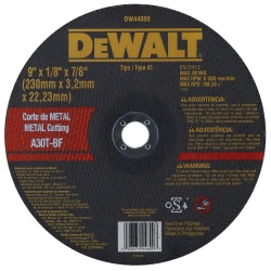 -55.04% Agregar al Carrito Quick view Eliminar de la lista de deseos Agregar a la lista de Deseos Comparar Disco de Corte 9" x 3.2mm x 7/8" para Metal Dewalt DW44600S/ 23.80 -55.04% S/ 10.70