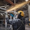 Cuenta con velocidad variable de 2.800 a 10.500 rpm y arranque suave, permitiendo un control preciso y protegiendo los componentes internos. Incorpora freno inteligente que detiene el disco rápidamente y pantalla HMI para monitoreo del estado de la herramienta