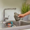• El depósito de 0,75 L es translúcido para control visual del nivel de líquido, la apertura amplia facilita el llenado rápido sin derrames, el diseño ergonómico mejora el agarre y evita deslizamientos durante el uso.
