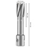 Compatible con taladros magnéticos de corte anular, esta herramienta incorpora una punta de carburo de tungsteno (TCT) que asegura alta durabilidad y resistencia al desgaste. Es ideal para cortar acero estructural y metales de gran espesor, permitiendo obtener agujeros limpios, grandes y sin rebabas. Su geometría avanzada reduce el calor y la fricción, lo que se traduce en una vida útil más prolongada y mayor eficiencia en el trabajo. Con una longitud de trabajo de 50 mm y total de 93 mm, proporciona capacidad de perforación profunda sin comprometer la precisión. Es una opción confiable para profesionales de la construcción metálica, montaje industrial y trabajos estructurales