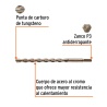 • Su cuerpo de acero al cromo garantiza alta durabilidad, mientras que la punta de carburo de tungsteno permite una perforación eficaz en superficies duras como el concreto.