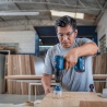El taladro percutor ofrece dos velocidades mecánicas, función de percusión (hasta 27.000 golpes por minuto) y un diseño compacto para trabajar cómodamente incluso en espacios estrechos. El atornillador de impacto, con un par de apriete máximo de 215 Nm, garantiza fuerza constante para fijaciones exigentes y trabajos prolongados