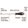 • El diseño hexagonal de la barra permite aplicar mayor torque con el uso de una llave, mientras que su mango bimaterial comfort grip asegura un agarre ergonómico y firme. El orificio para colgar facilita su almacenamiento y el marcado con código de color ayuda a identificar rápidamente la medida y tipo de punta. Ideal para uso en mantenimiento, ensamblaje de muebles, reparaciones y trabajos profesionales