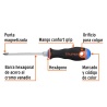 • El diseño hexagonal de la barra permite aplicar mayor torque con el uso de una llave, mientras que su mango bimaterial comfort grip asegura un agarre ergonómico y firme. El orificio para colgar facilita su almacenamiento y el marcado con código de color ayuda a identificar rápidamente la medida y tipo de punta. Ideal para uso en mantenimiento, ensamblaje de muebles, reparaciones y trabajos profesionales