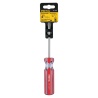 • Desarmador plano de 1/4" con barra de 4", diseñado para uso profesional en carpintería, construcción, mecánica, electricidad y más. Su barra redonda de acero al carbono con acabado cromo brillante ofrece resistencia y durabilidad. Punta magnética que facilita el agarre del tornillo, y mango de PVC ergonómico con doble espiga extra profunda para una unión firme y prolongada. No cuenta con aislamiento eléctrico. Cumple con la norma ASME-B107.600