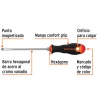 • El hexágono integrado en la barra permite aplicar mayor torque con ayuda de una llave, ideal para tornillos más ajustados. El mango comfort grip proporciona un agarre firme y cómodo, mientras que el orificio para colgar facilita su almacenamiento. Además, su marcado y código de color permiten identificar rápidamente la medida y tipo de punta. Perfecto para tareas de mantenimiento, bricolaje y uso profesional