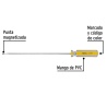 • Su mango de PVC proporciona durabilidad y un agarre cómodo, mientras que su diseño hexagonal evita que la herramienta ruede cuando se coloca sobre superficies planas. El sistema de marcado con código de color permite identificar fácilmente la medida y el tipo de punta, mejorando la organización y rapidez en la selección de la herramienta