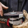 El sistema de fijación ""hook and loop"" facilita un montaje rápido, seguro y sin herramientas, lo que permite optimizar el flujo de trabajo y hacer cambios inmediatos entre tareas. Además, su color violeta permite identificar rápidamente el tipo de grano y su aplicación específica