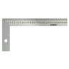 • La escuadra tipo L de 300 mm es una herramienta indispensable para tareas que exigen precisión en el marcado y verificación de ángulos rectos. Su fabricación en acero templado flexible le brinda una durabilidad superior, resistiendo el desgaste en el uso continuo sobre distintos materiales como madera, metal o plásticos