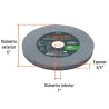 • Con un grosor de 19mm y forma plana, asegura estabilidad durante el trabajo, mientras que el orificio central de 1" incluye adaptadores de 1/2", 5/8" y 3/4", permitiendo una instalación versátil en distintos modelos de esmeriles de banco