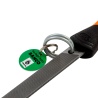 Lima plana de 145 mm diseñada bajo los estándares científicos ERGO™ para un trabajo ergonómico y eficiente. Su diseño permite limar superficies planas, ángulos afilados, codos y realizar desbarbado en aceros de alta aleación o herramientas pesadas. Incorpora un anillo de acero inoxidable acoplado al cuerpo para trabajos en altura, con placa de color compatible con sistemas de seguridad lanyard, cumpliendo las prácticas recomendadas por DROPS. Ofrece un alto grado de extracción con corte entrefino y picado doble