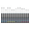 Set de destornilladores de precisión Bosch PRO JG con puntas PH, SL y TX, diseñado para trabajos de ajuste fino en componentes pequeños y ensamblajes técnicos. Su estructura permite un control estable del torque, evitando daños en tornillos delicados y mejorando la precisión en cada giro. Las puntas mecanizadas aseguran mejor ajuste y reducen el deslizamiento, mientras su diseño compacto facilita el acceso a espacios reducidos y profundos. El mango ergonómico ofrece agarre firme para trabajos prolongados, manteniendo estabilidad en tareas de electrónica, mecánica ligera y mantenimiento detallado