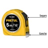 • La wincha de 5 metros con hoja de 19 mm es una herramienta robusta y confiable, ideal para profesionales que requieren mediciones precisas y durabilidad en condiciones intensivas. Su hoja blanca, cubierta con laca protectora, ofrece alta resistencia a rayaduras y desgaste, garantizando una lectura clara incluso con uso frecuente